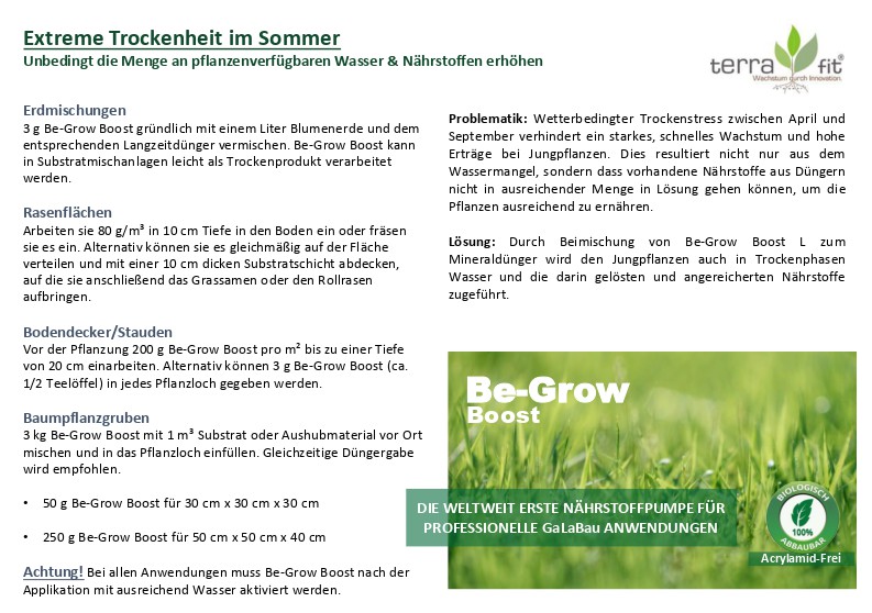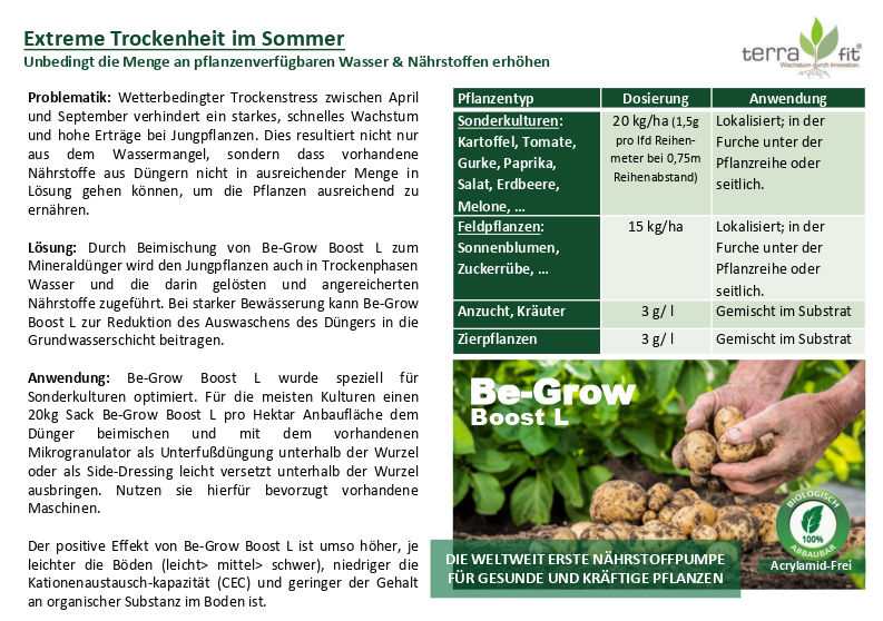 Durch Beimischung von Be-Grow Boost L zum Mineraldünger wird den Jungpflanzen auch in Trockenphasen